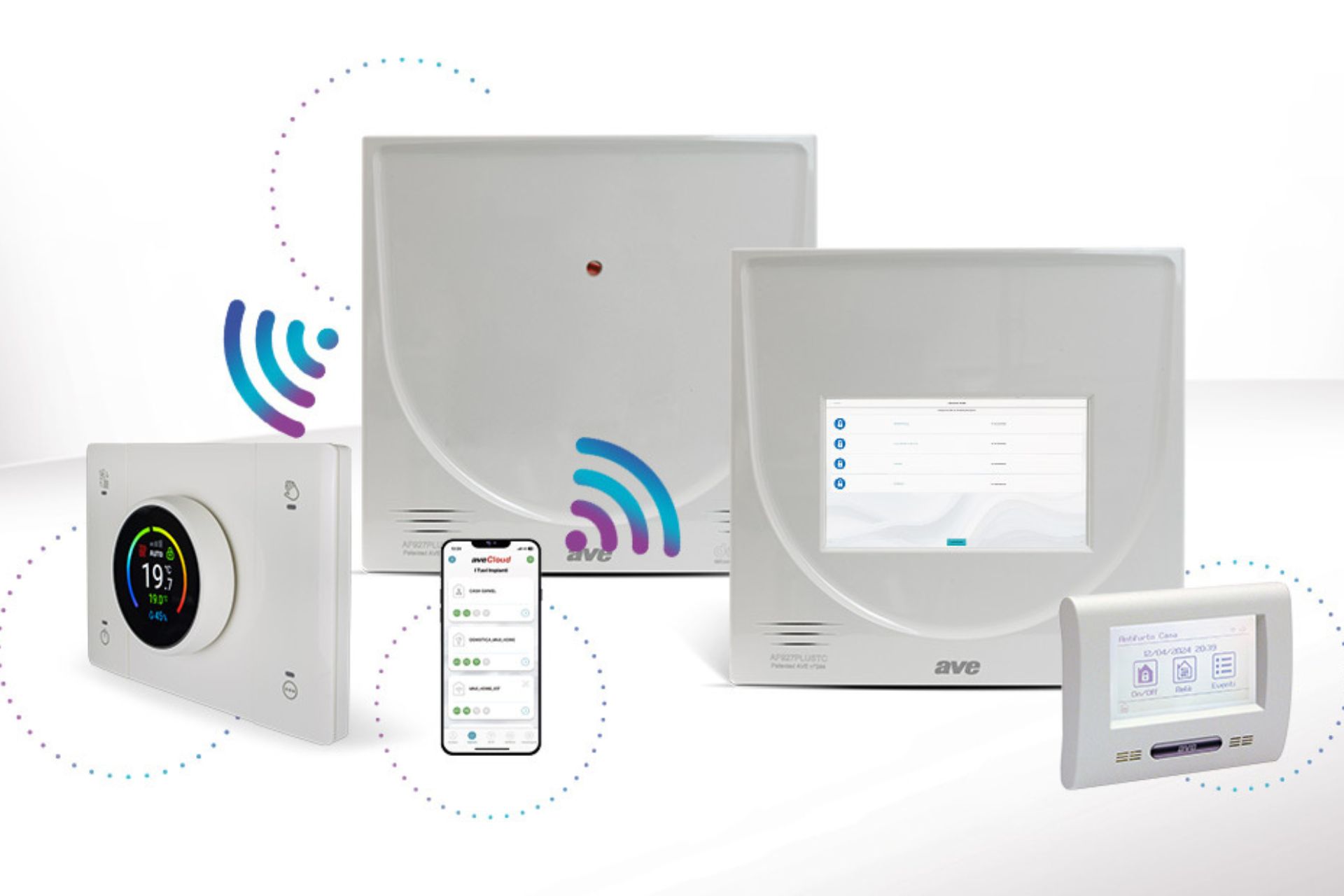 Le centrali antintrusione AVE AF927PLUSTC (con monitor LCD da 7”) ed AF927PLUS si integrano con i dispositivi della gamma connessa DOMINA SMART.