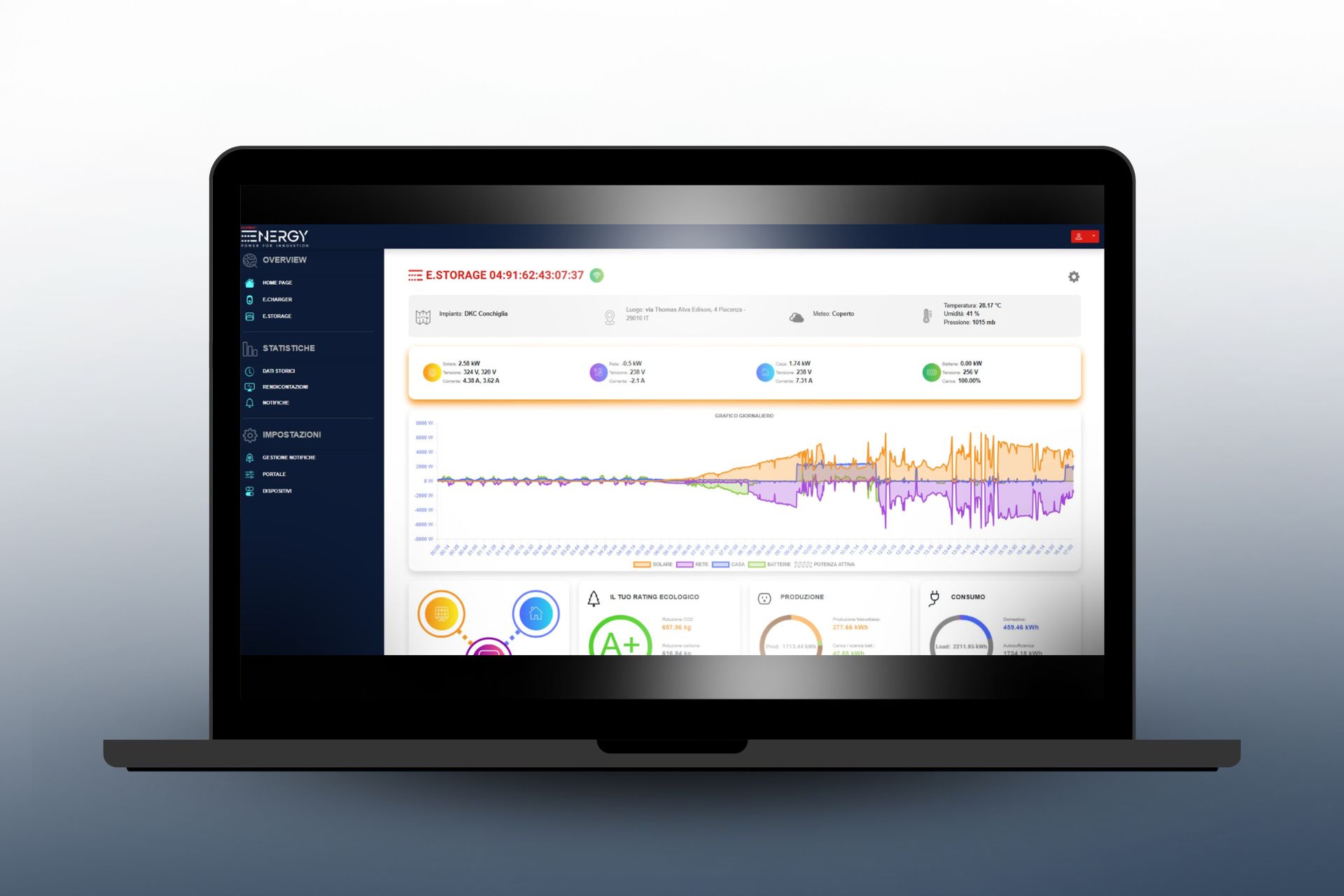 Allo scopo di garantire un utilizzo efficiente e coordinato con le altre soluzioni della Linea Energy, il funzionamento di E.Storage, come quello di E.Charger ed E.Charger Double, è supportato dal Portale Energy, il quale consente di ottimizzare in tempo reale le prestazioni dell’impianto fotovoltaico massimizzando l’efficienza della produzione solare, alimentando i consumi dell’abitazione e sfruttando al massimo l’accumulo di energia prodotta in eccesso per mezzo delle batterie.