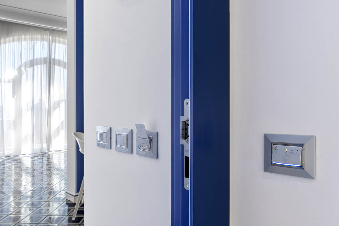 Uno degli aspetti più rilevanti è l’implementazione dei lettori di card. Quelli esterni rendono l’accesso alla struttura e ai singoli alloggi eccezionalmente sicuro, garantendo parallelamente agli ospiti la massima libertà di spostamento. Nelle camere, invece, i lettori interni abilitano i servizi di stanza in presenza di una card abilitata, garantendo il massimo risparmio energetico quando le camere sono inoccupate.