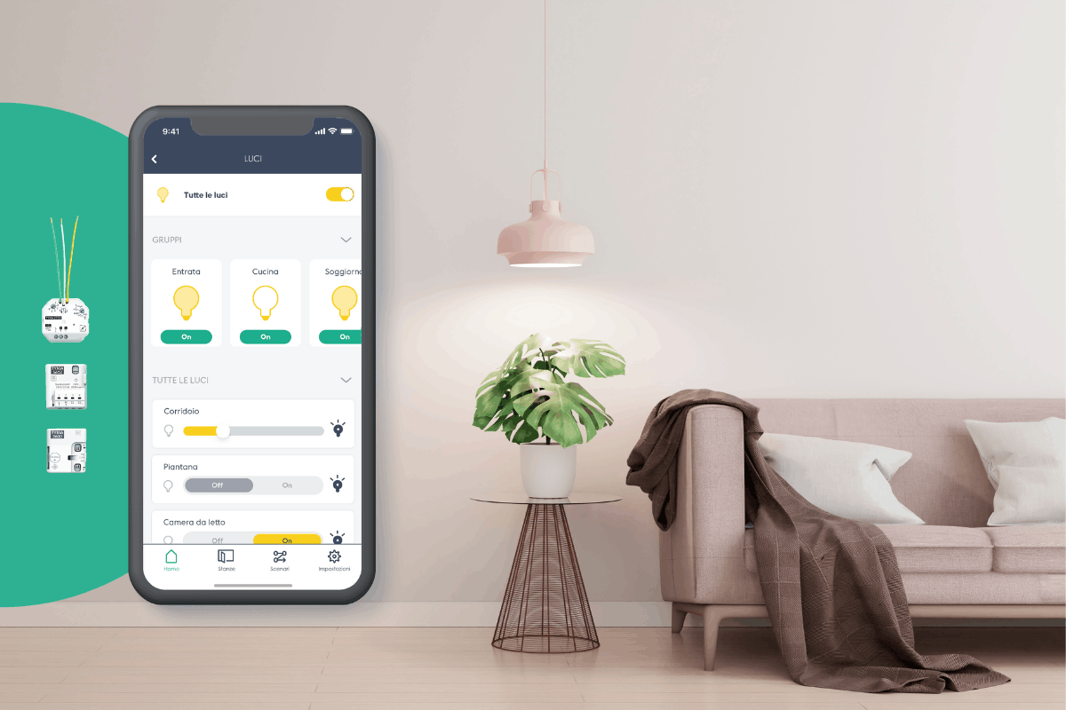 - Semplificare le attività quotidiane creando programmazioni orarie, scenari e routine