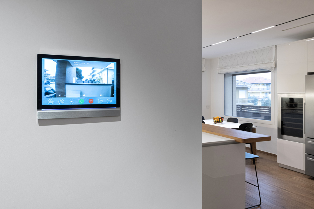 Il sistema domotico AVEbus permette la gestione di tutte le automazioni integrate. Il controllo dell’impianto è affidato al supervisore touch screen da 10 pollici con frontale in alluminio naturale spazzolato, che consente di monitorare e personalizzare ogni ambiente in modo intuitivo.