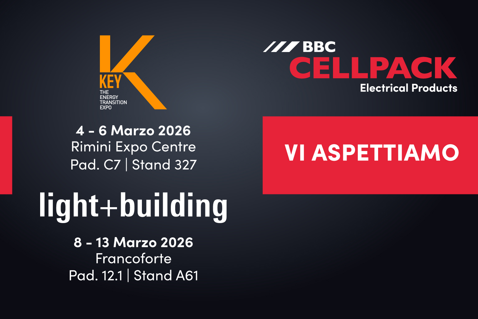 Parallelamente, il nostro Headquarters, insieme agli specialisti italiani, sarà presente anche a Light + Building (Francoforte), la vetrina mondiale per le tecnologie elettriche ed energetiche. Una presenza coordinata che conferma la solidità e la visione internazionale del gruppo.